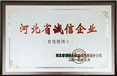 本网讯 近期,在河北省诚信企业评选委员会办公室联合河北省社会信用体系建设领导小组办公室、河北省企业家协会和省直有关单位组织开展的2017年“河北省诚信企业”评选表彰活动中,经层层审核,我公司再次荣获“河北省诚信企业”荣誉称号,至此,我公司已连续6次荣获此项荣誉。