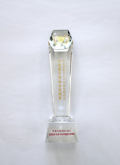 公司荣获全国百佳(优秀)农资经销商 “十年最具影响力经销商”称号