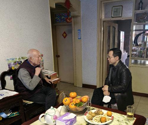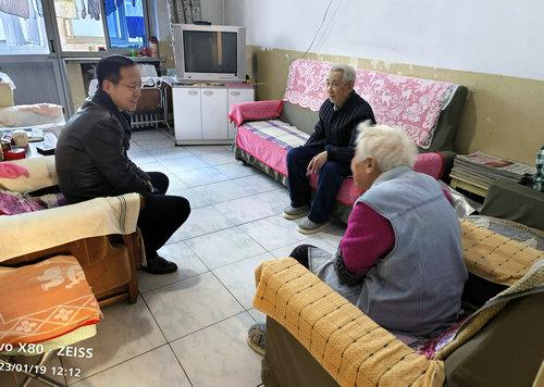 在退休军转干部张淑英家,集团公司党委委员赵利强热情转达了新任领导班子的亲切慰问,详细询问老干部的身体状况,得知老干部生活困难、因疫情肺气肿加重时,细心叮嘱放松心情、加强营养、适当锻炼,并送上慰问品。