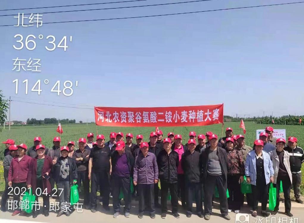 经过一年的跟踪调查,截至目前,集团公司组织开展的小麦种植大赛已取得阶段性成果,由公司推出的绿色环保高效的聚谷氨酸二铵已在多个小麦试验示范田中展现出明显优势,用现实数据说话,证明了新型二铵产品的优良品质和突出效果,受到了广大农民朋友的热烈欢迎。观摩团的经销商、种植大户及农户代表们纷纷表示:今后用肥就用河北农资的,用着放心!