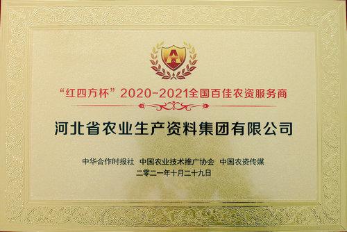 本网讯 10月29日,由中华合作时报社、中国农业技术推广协会、中国农资传媒主办的“红四方杯”2020-2021全国百佳农资服务商颁奖典礼在江西南昌市举行,对农资行业中具有为民服务、创新发展、艰苦奋斗的优秀农资服务商代表进行了表彰。集团公司再次荣获“全国百佳农资服务商”称号。