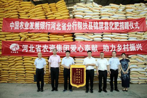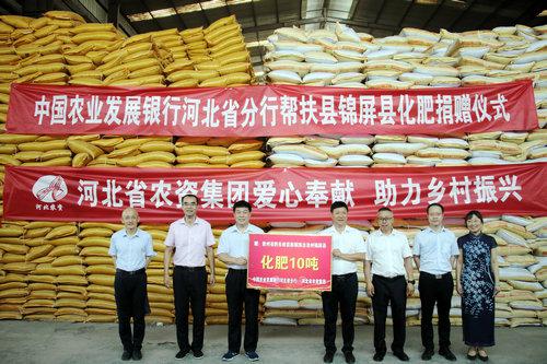 本网讯 8月3日,集团公司与中国农业发展银行河北省分行在晋州仓库举行联合捐赠仪式,由集团公司向该行定点帮扶县贵州省黔东南苗族侗族自治州锦屏县捐赠尿素商品10吨。