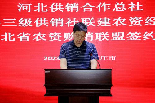 此次河北省三级供销社联合建设农资经营体系签约仪式,是深入贯彻落实党中央关于“完善农资保供稳价应对机制”、保障粮食安全、创新农业生产服务方式、深入推进供销社综合改革、健全完善农资服务网络、有效提升农资经营服务能力、拓展终端市场的重大举措。河北省农资集团全面贯彻党的二十大精神,深入学习贯彻习近平总书记重要讲话和重要指示精神,牢记“国之大者”,继承发扬“背篓精神”“扁担精神”,坚守服务“三农”初心,主动担当作为,做优做强主业,充分发挥农资流通主渠道作用,为农民提供优质、优价、绿色农资商品,为粮食生产安全,建设农业强省贡献供销力量。