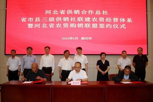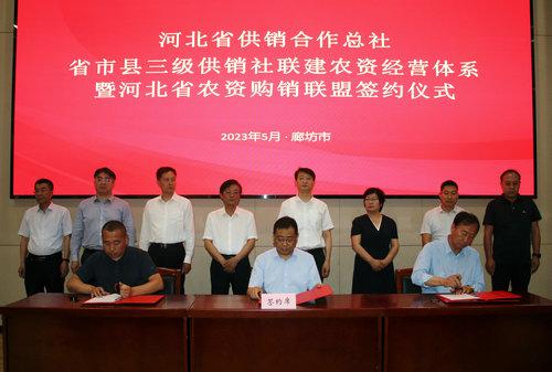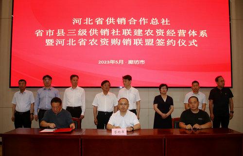 此次河北省三级供销社联合建设农资经营体系签约仪式,是深入贯彻落实党中央关于“完善农资保供稳价应对机制”、保障粮食安全、创新农业生产服务方式、深入推进供销社综合改革、健全完善农资服务网络、有效提升农资经营服务能力、拓展终端市场的重大举措。河北省农资集团全面贯彻党的二十大精神,深入学习贯彻习近平总书记重要讲话和重要指示精神,牢记“国之大者”,继承发扬“背篓精神”“扁担精神”,坚守服务“三农”初心,主动担当作为,做优做强主业,充分发挥农资流通主渠道作用,为农民提供优质、优价、绿色农资商品,为粮食生产安全,建设农业强省贡献供销力量。
