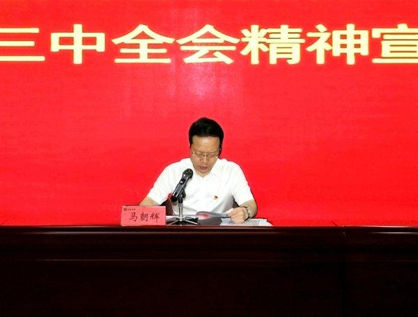 马朝辉围绕学习贯彻全会精神,从深刻认识全会的重大意义,深入学习领会习近平总书记在党的二十届三中全会上的重要讲话精神,全面准确理解全会《决定》提出的进一步全面深化改革重大举措,全力以赴抓好全会精神贯彻落实等四个方面进行全面宣讲,并对《决定》中重要内容作解读。