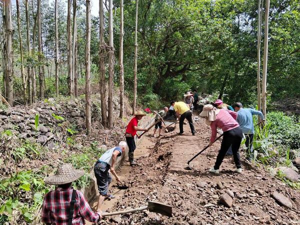 广西武宣县东乡镇屯应村党员干部与群众一起修水渠抗旱。雷正晓 摄