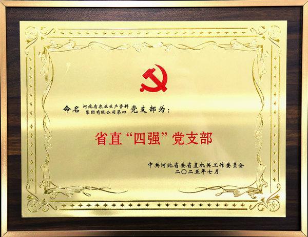 本网讯    近日,中共河北省委省直机关工作委员会发布《关于命名2025年省直机关“四强”党支部的决定》,集团公司第四党支部荣获省直“四强”党支部称号。