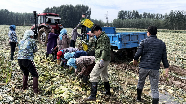 本网讯 国庆中秋双节欢庆之际,正值滦南丰安的甜玉米与青贮作物进入成熟关键期,但连绵阴雨不期而至,田间积水严重,作物倒伏、霉变风险加剧,丰收成果面临严峻威胁。面对严峻灾情,中农丰安公司启动应急预案,全体员工放弃休假,火速行动,昼夜奋战,打响了一场与时间赛跑、与风雨搏斗的抢收战。