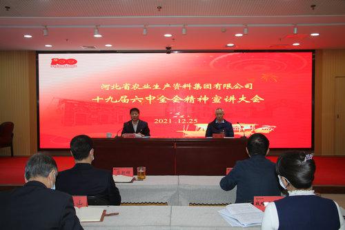 本网讯 2021年12月26日,河北省农资集团公司在河北农资大厦召开党员干部大会,深入学习宣传贯彻党的十九届六中全会精神,由省供销社监事会主任、集团公司党委书记、董事长李平现对全会精神进行宣讲,集团公司党委副书记任海主持会议。集团公司班子成员、各单位负责人及全体党员现场参会,集团公司其他人员通过钉钉视频参会。