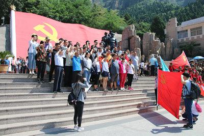 在河北易县狼牙山五勇士雕塑前,全体党员面对鲜红的党旗,举起右拳,再次庄严宣誓。随后,全体党员参观了狼牙山五勇士纪念馆,重温了5位勇士临危不惧、英勇阻击、用生命和鲜血谱写的壮举,他们崇高的爱国主义、革命英雄主义民族气节感染了每一个人。全体党员还登上了狼牙山主峰棋盘陀,瞻仰了五勇士纪念塔,在峰顶怀着崇敬的心情远观五勇士跳崖地,缅怀革命先烈。